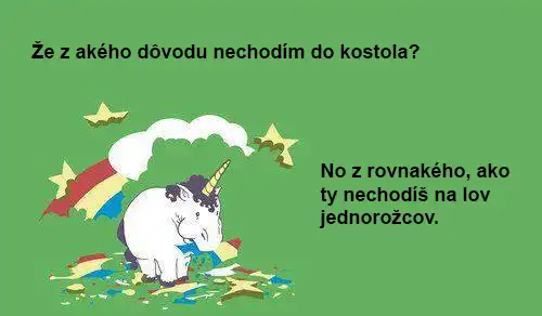 Náš pan farář je vysokoškolsky studovaný, takže se určitě neplete. A i kdyby ano, co biskupové a papežové? Na světě žije více, než miliarda katolíků, církev má za sebou takřka dvoutisíciletou historii a pravdy víry zkoumaly mnohé generace teologů, filosofů a dalších učenců. Ti všichni se přece nemohli mýlit! Vždyť na tom, že existuje Bůh, se shodnou křesťané nejen mezi sebou, ale i s židy, muslimy a mnoha, mnoha dalšími.