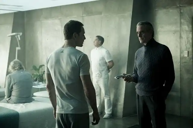 Po většinu času sledujeme právě tuto moderní linii. Současný Michael Fassbender se v ní prochází budovou, povídá si s lidmi v šedém nebo bílém oblečení, příležitostně se potýká s psychickými problémy a nakonec se vždycky dopotácí do místnosti s Animem, kde se napojí na obří mechanickou ruku a jde se mrknout na další epizodu ze života Michaela Fassbendera z patnáctého století.