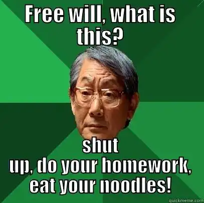 Čtete tam něco o svobodné vůli? Protože já teda rozhodně ne. A o pár veršů dále: