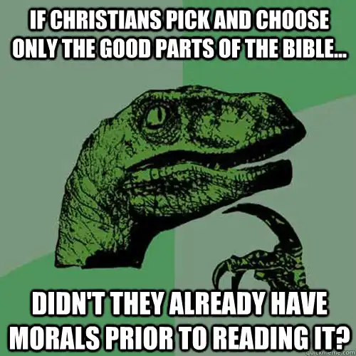 Snad nemusím znovu opakovat, že milé, společensky zodpovědné chování je evolučně výhodné a nějakého nebeského zákonodárce vůbec nepotřebuje. Morálka také nemusí být vůbec „absolutní“, aby byla objektivní – existuje značné množství morálních systémů, které si bez Boha pohodlně vystačí, a přitom nejsou relativistické. Pokud byste se chtěli dozvědět víc, doporučuji třeba skvělé video z kanálu QualiaSoup.